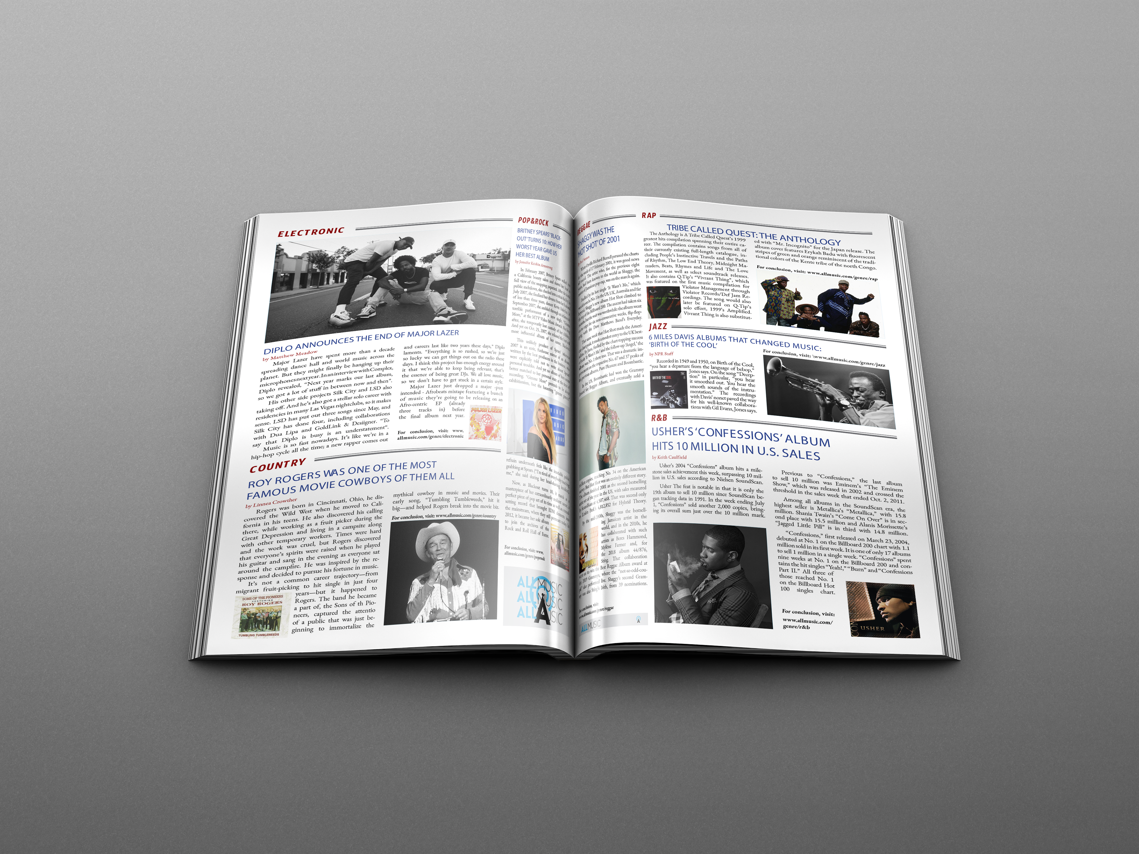 The project involves the creation of visually captivating and engaging magazine spreads for All Music Magazine, a publication dedicated to covering a wide spectrum of music genres, artists, and industry news.