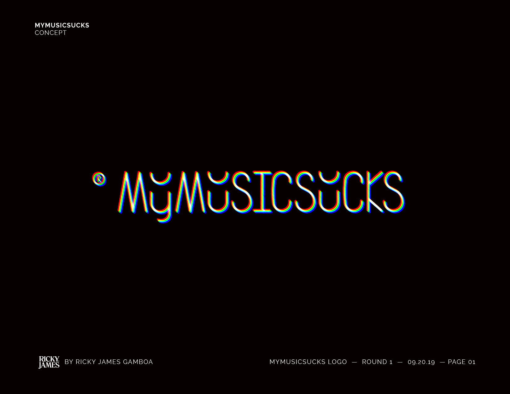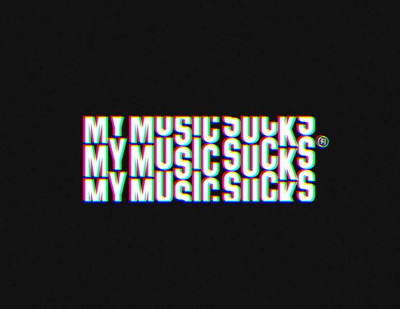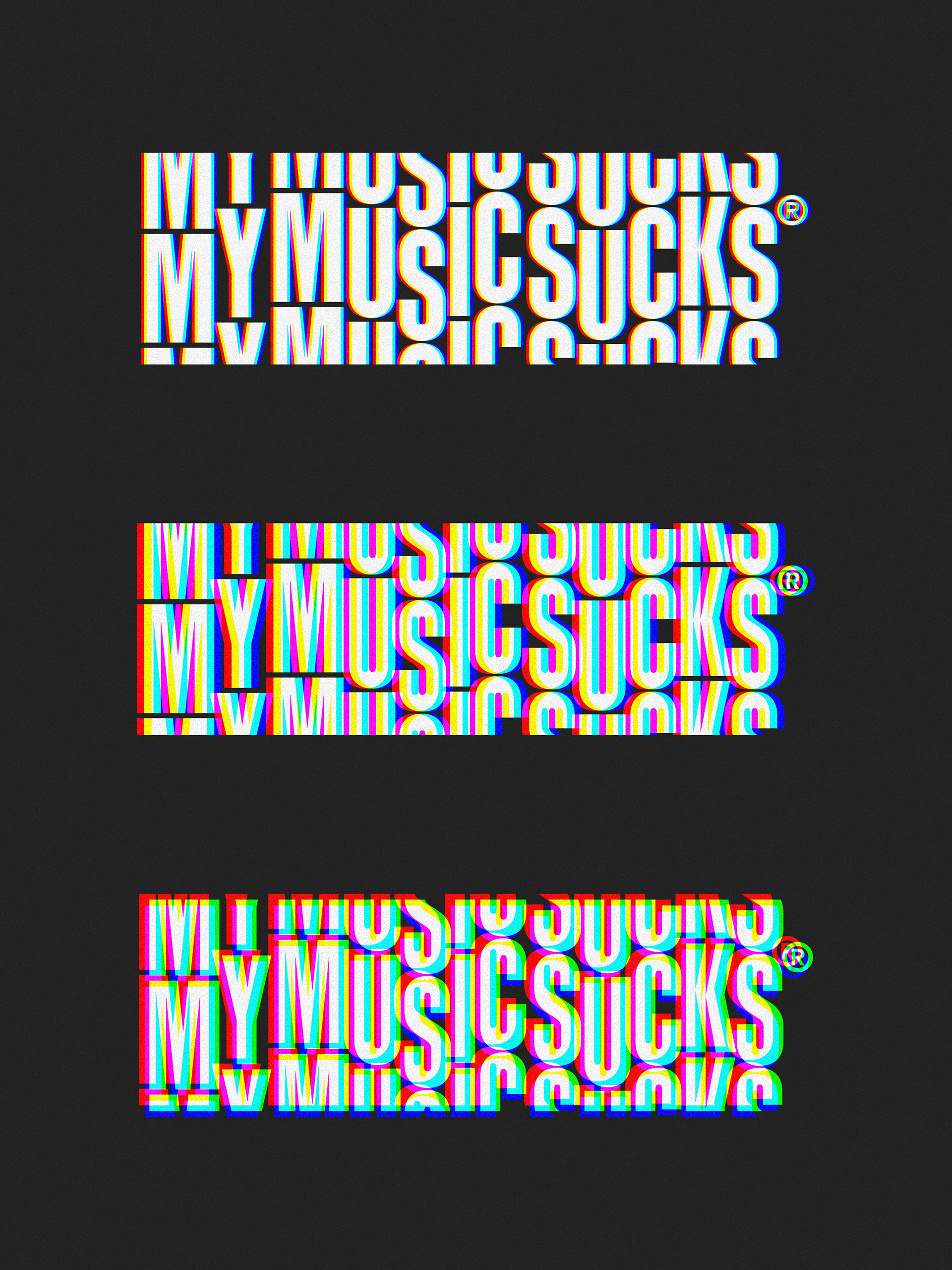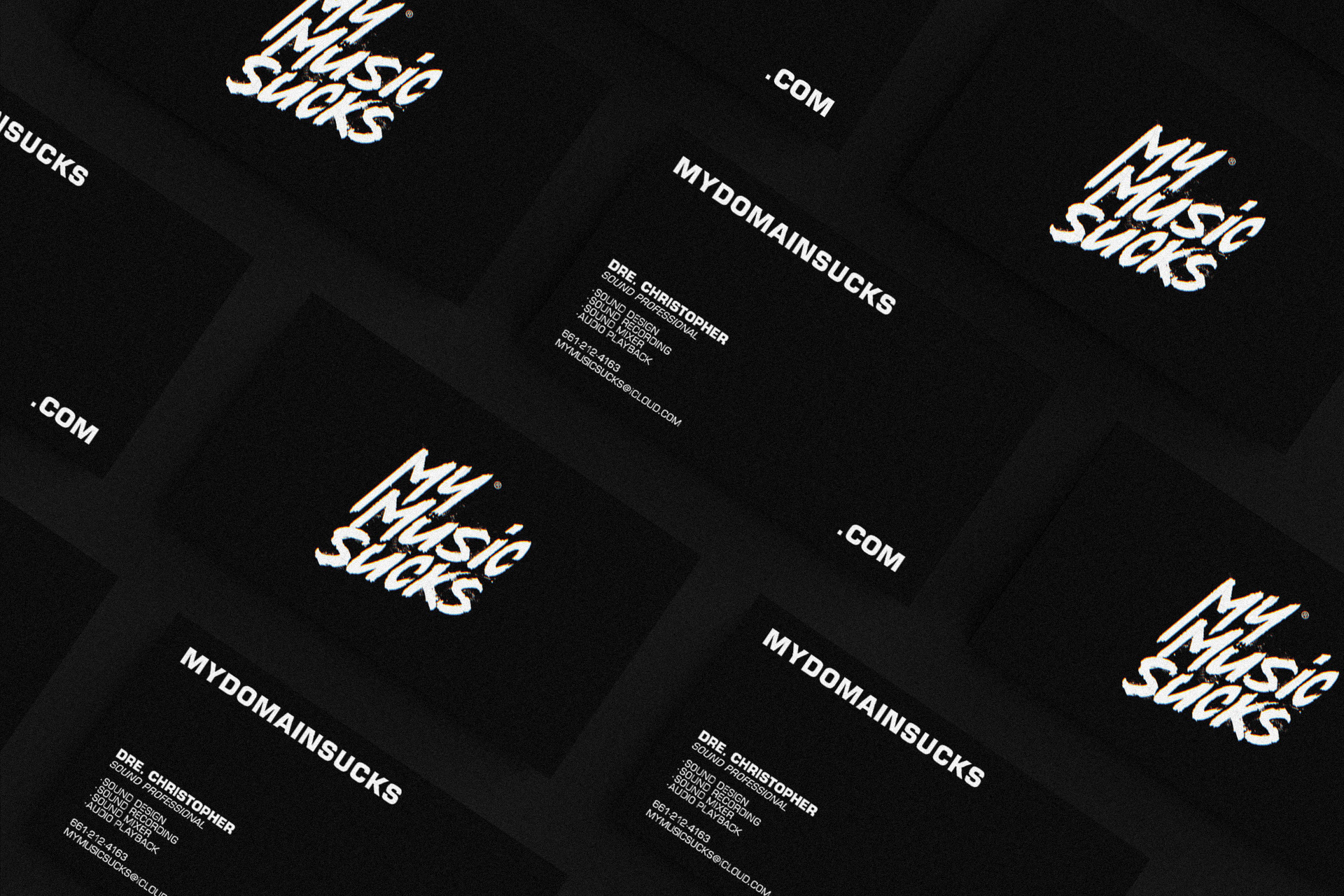 Logo branding and business card designs I did for music artist MyMusicSucks.