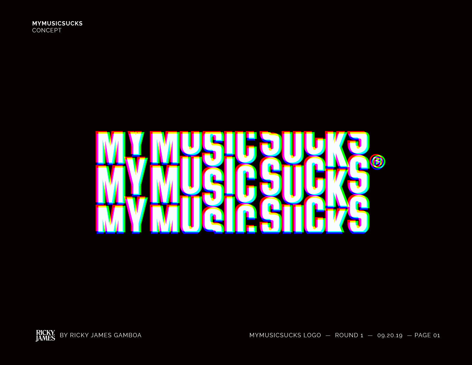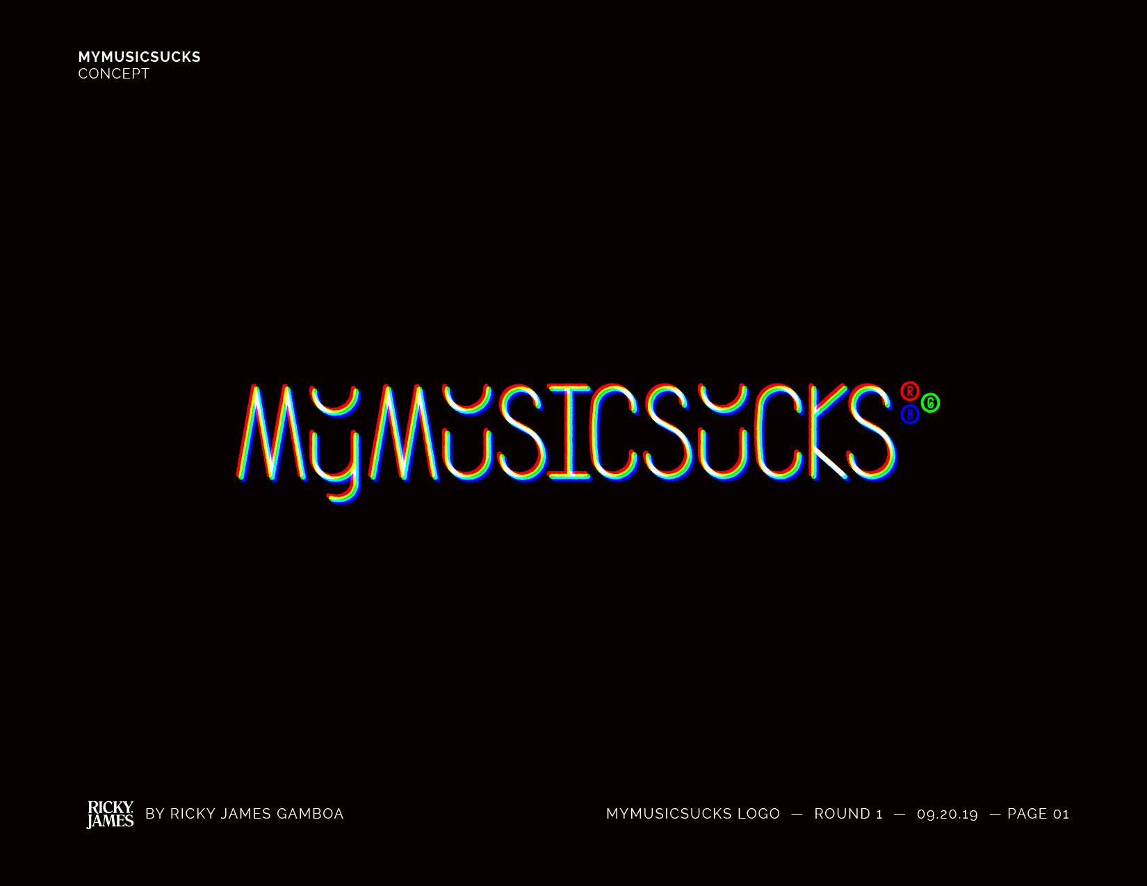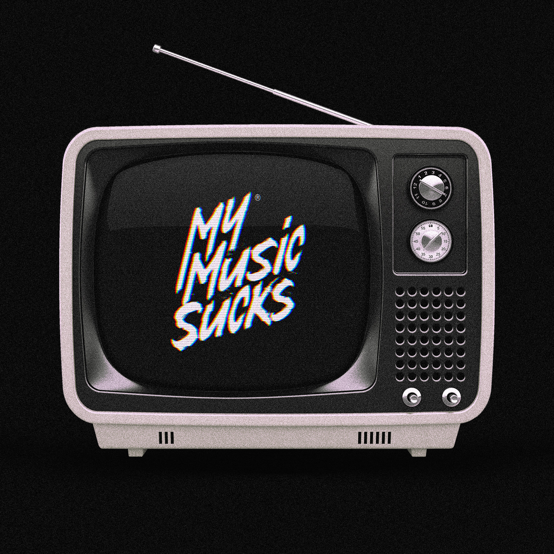 Logo branding and business card designs I did for music artist MyMusicSucks.